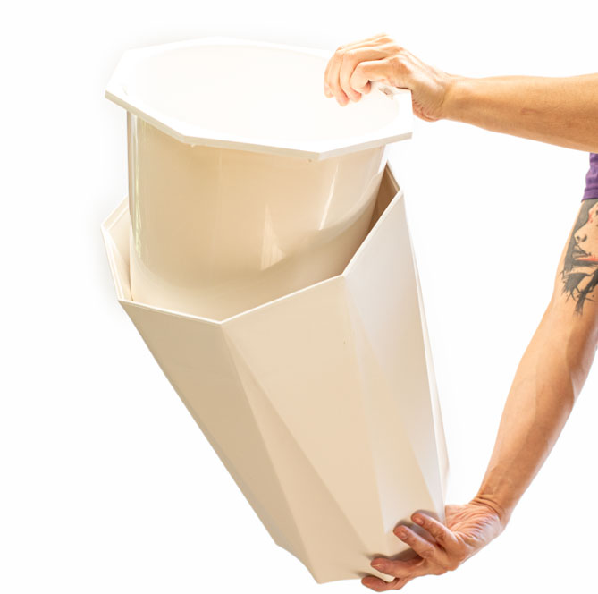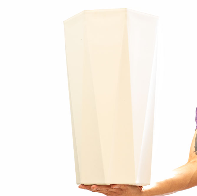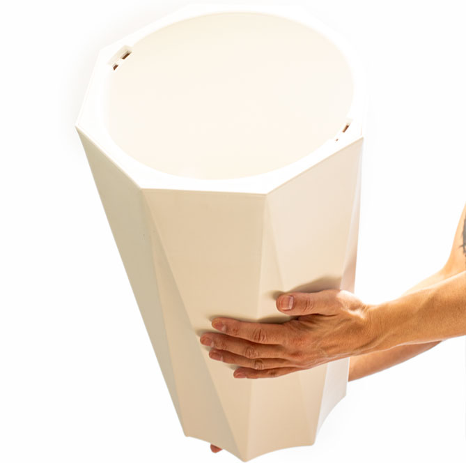 Los maceteros Hexa, Están elaborados en plástico resistente mate blanco, y se componen de dos piezas que permiten que haya un drenaje interno del agua del riego