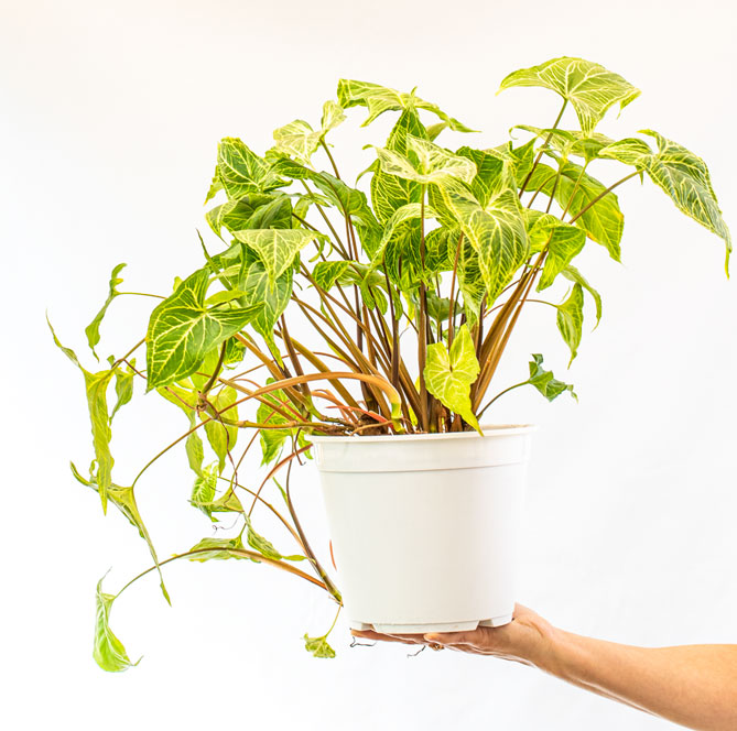 Riego:  moderado. No regar hasta que esté más menos seco el sustrato. Evitar exceso de agua, puede causar que sus raíces de pudran. Frecuencia del riego es: 2 veces a la semana en verano, y 1 veces a la semana o cada 10 días, en invierno. Cantidad de agua según tamaño de la planta, ideal agregar agua hasta que salga por el drenaje inferior. Frecuencia de riego varía según el clima de cada hogar, verificar que el sustrato este más o menos seco antes de volver a regar. En caso de baja humedad ambiental, usar humidificador, dejar un plato con agua al lado del macetero, o usar pulverizador de agua.
