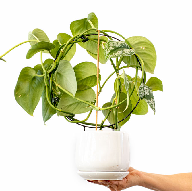 Tutor metálico pintado con materiales resistentes al agua y humedad. Ideal para hacer formas entretenidas con las plantas colgantes